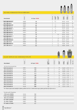 Sipariş No 80.000 saat Güç (kVAr) 400 VAC Güç (kVAr) 450 VAC Boyutlar DxH (mm) Çalışma Sıcaklığı ( Adet / Koli
