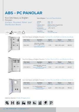 Sıva Üstü Sayaç ve Dağıtım Teknik Bilgiler / Technical Specifications Dahili ve Harici Dağıtım Panoları Teknik Bilgiler / Technical Specifications